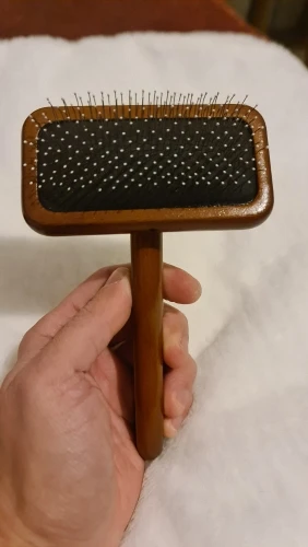 A simple, aesthetic grooming brush for short to medium-haired cats and dogs. The wooden handle gives it a natural feel, and the soft capped bristles are gentle on skin while still picking up loose fur and dander. It’s great for regular brushing without the drama. Its suitable, just not ideal for long-haired pets due to bristle depth, though please see our range of brushes tailored to your loved one's specification. Easy to hold, easy to clean, and built for everyday use.